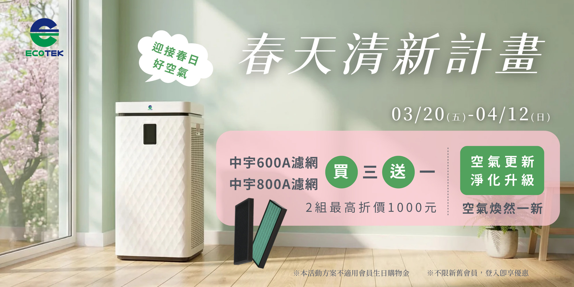 春天清新計畫,濾網限時買三送一