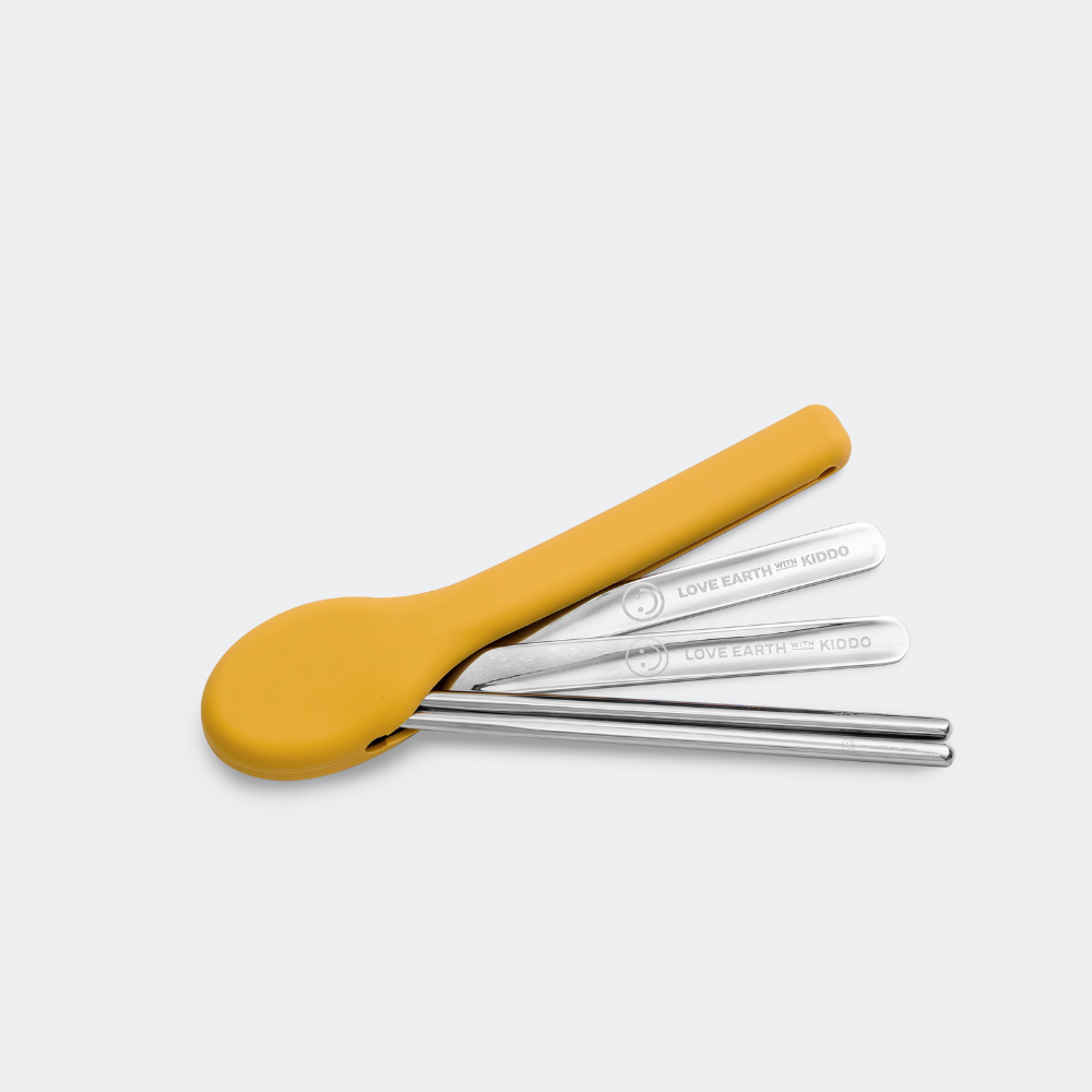 Kiddo|矽緻收納不鏽鋼餐具3件組_任選2組優惠 (大地棕/珊瑚紅/萊姆黃/蔚海藍)