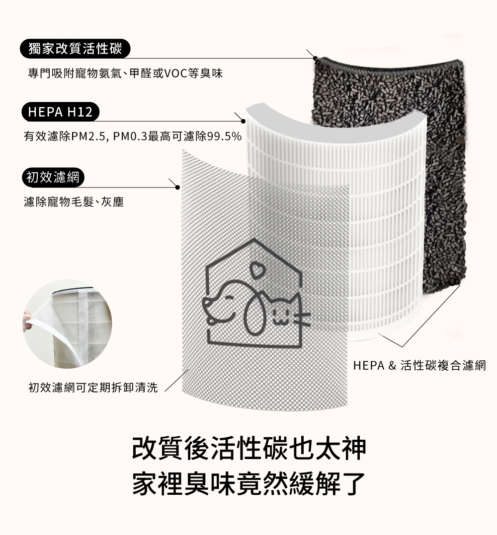 HEPA H12高效濾網,PM2.5、PM0.3懸浮微粒皆可有效濾除