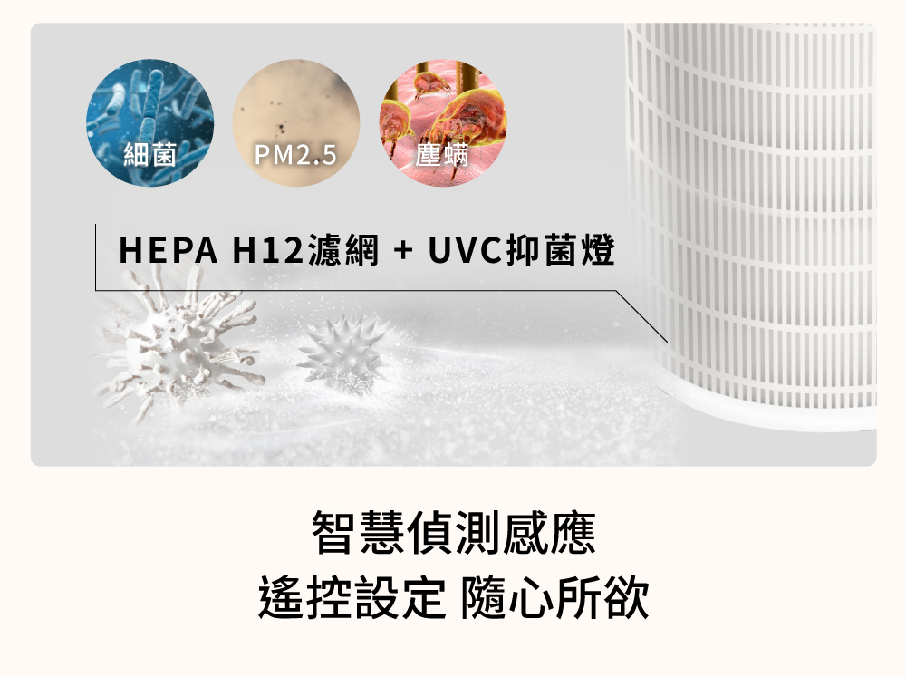 通通交給HEPA濾網及UVC抑菌燈一網打淨